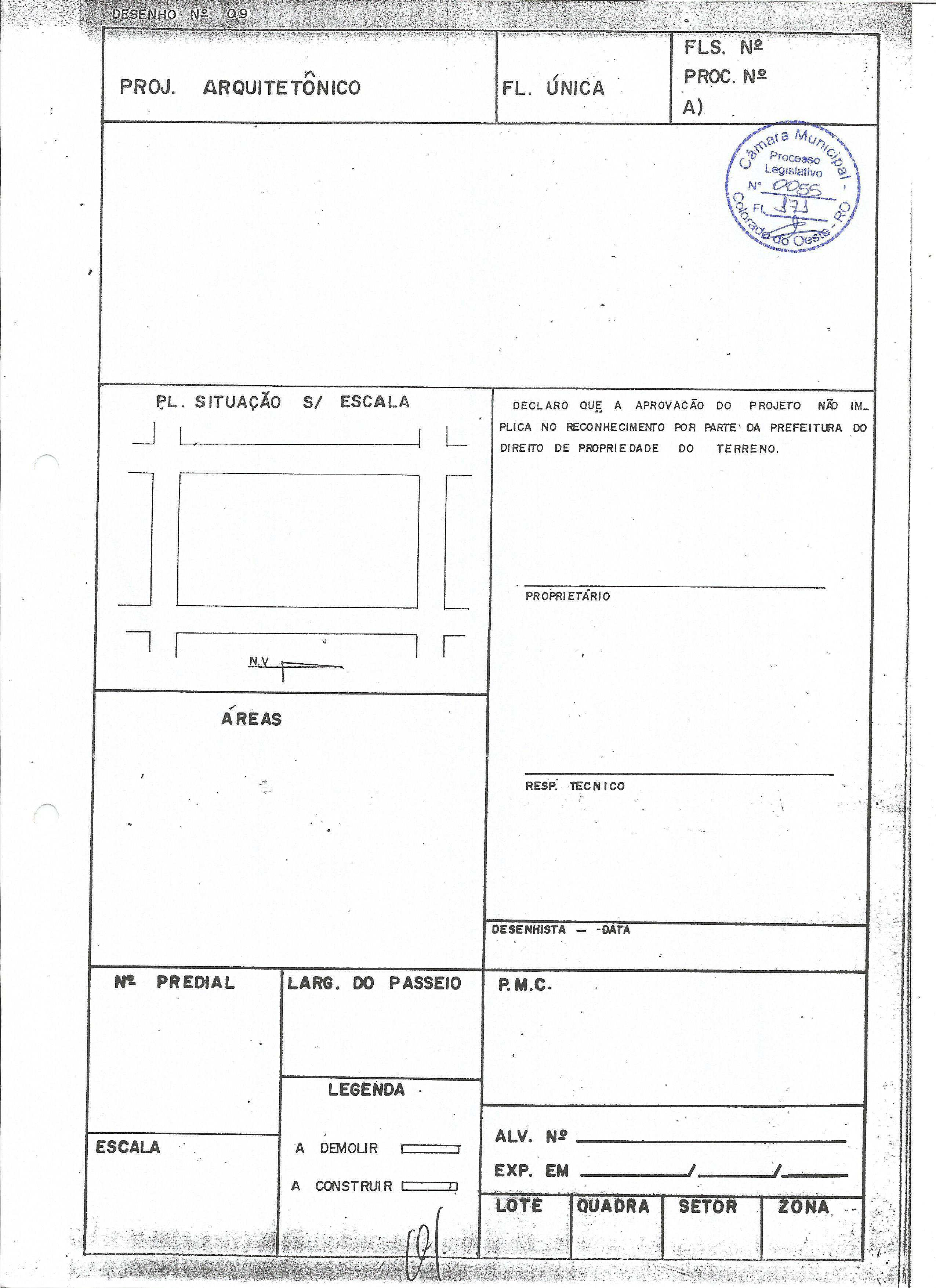 projetos completos em 03 (três) jogos de copias heliográficas, sem rasuras, assinadas pelo proprietário autor e o responsável técnico, dos quais, após visados 02 (dois) jogos, ficarão em poder do proprietário, sendo que um deverá ficar obrigatoriamente na obra.