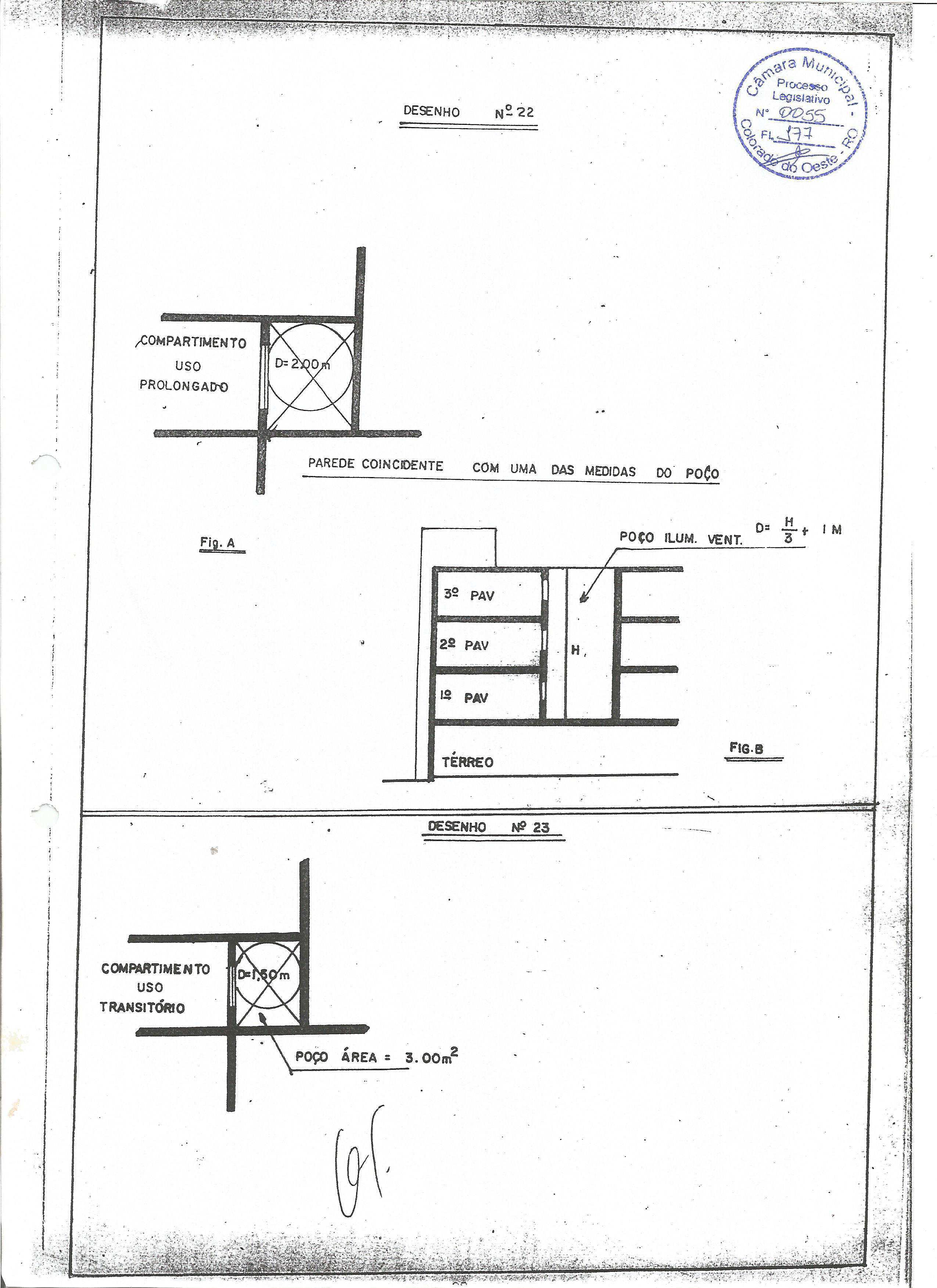 | CORREDORES | - | 0,80 | - | 2,30 | - | - | 0,70 | I - QUANDO A ÁREA FOR SUPERIOR A 10,00 M2 (DEZ METROS QUADRADOS) DEVERÁ SER ILUMINADA NA RELAÇÃO DE 1/24 (UM VINTE E QUATRO AVOS) DA ÁREA DO PISO; II - QUANDO O COMPRIMENTO FOR SUPERIOR A 10,00M (DEZ METROS) DEVERÁ SER ALARGADA EM 0,10M (DEZ CENTÍMETROS) POR 5M (CINCO METROS) OU FRAÇÃO; III - TOLERA-SE VENTILAÇÃO POR MEIOS DE CHAMINÉS OU PELA CAIXA DE ESCADA. |